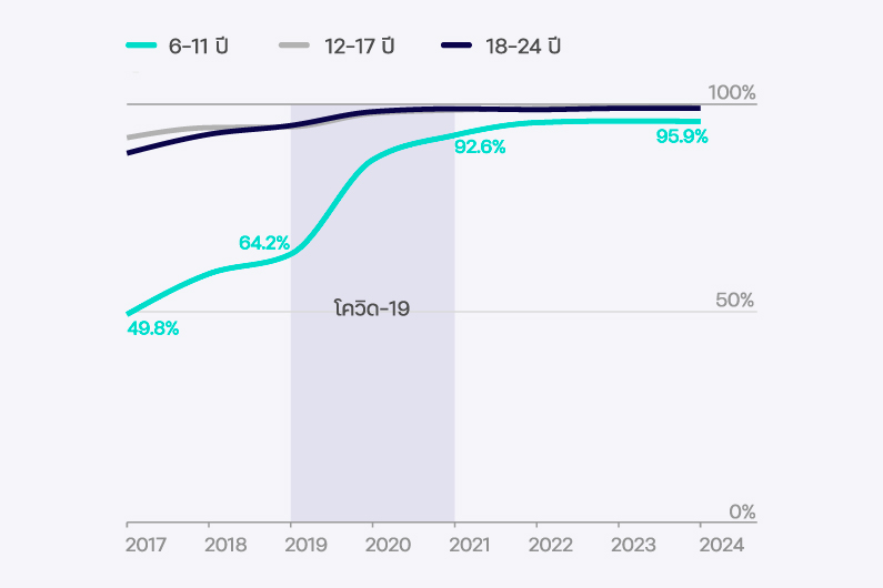 ก่อนโควิด เด็กไทยวัย 6-11 ปีเข้าถึงอินเทอร์เน็ตเพียงครึ่งหนึ่ง ปัจจุบันพวกเขาเกือบทั้งหมดเข้ามาเป็นผู้ใช้กลุ่มใหม่อย่างถาวร