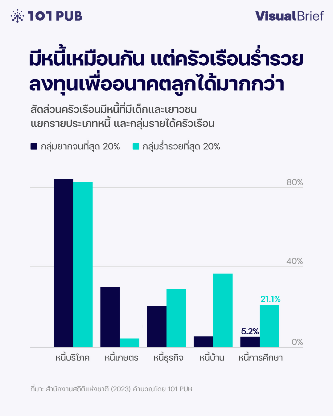 มีหนี้เหมือนกัน แต่ครัวเรือนร่ำรวยลงทุนเพื่ออนาคตลูกได้มากกว่า