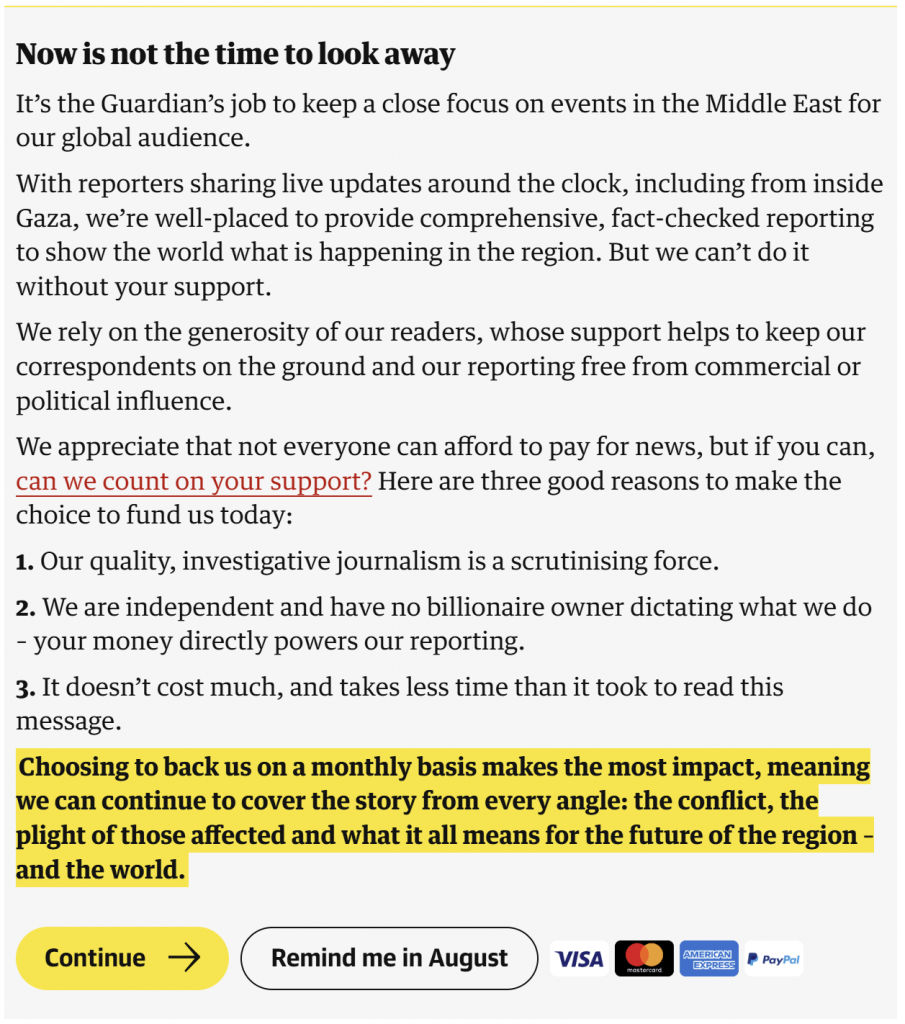7 Matt Skibinski and Rande Price, Building Subscriptions and Memberships for Quality Journalism: DCN Reader Revenue Case Studies (The Lenfest Institute, 2019), 10-11; “A mission for journalism in a time of crisis” The Guardianhttps://www.theguardian.com/news/2017/nov/16/a-mission-for-journalism-in-a-time-of-crisis (accessed July 16, 2025).
