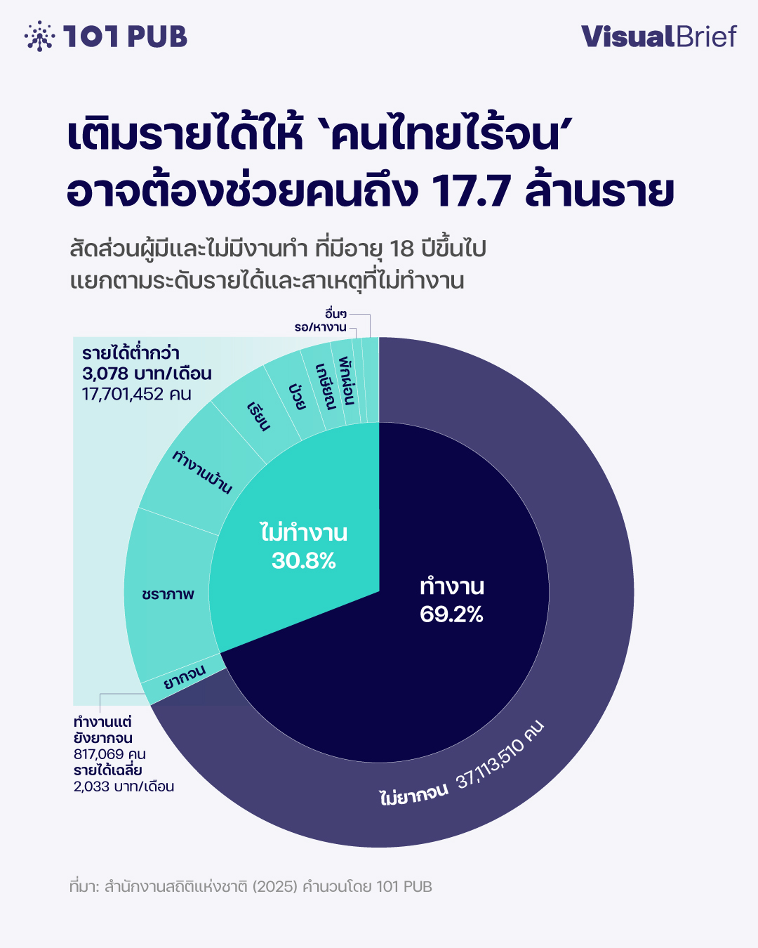| ↑3 | 101 PUB คำนวนจากข้อมูลการสำรวจภาวะเศรษฐกิจและสังคมของครัวเรือนของสำนักงานสถิติแห่งชาติ (2025) |