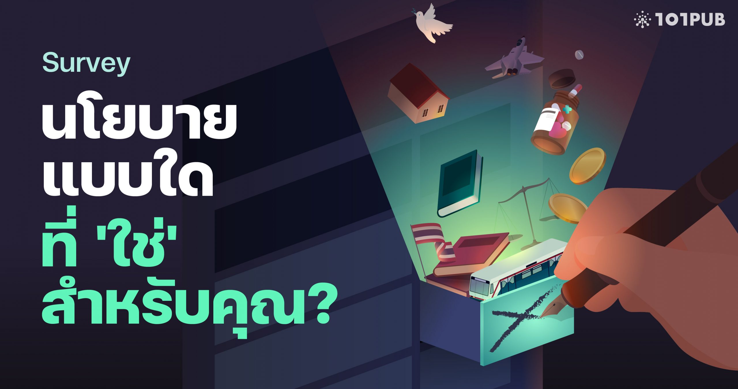 101 PUB ชวนผู้มีสิทธิ์เลือกตั้งตอบร่วมสะท้อนมุมมองและทัศนคติต่อนโยบายที่ตอบโจทย์มากที่สุด เพื่อต่อยอดการขับเคลื่อนนโยบายสาธารณะไปสู่การนำไปใช้จริง พร้อมลุ้นรับเงินรางวัลรวม 20,000 บาท!