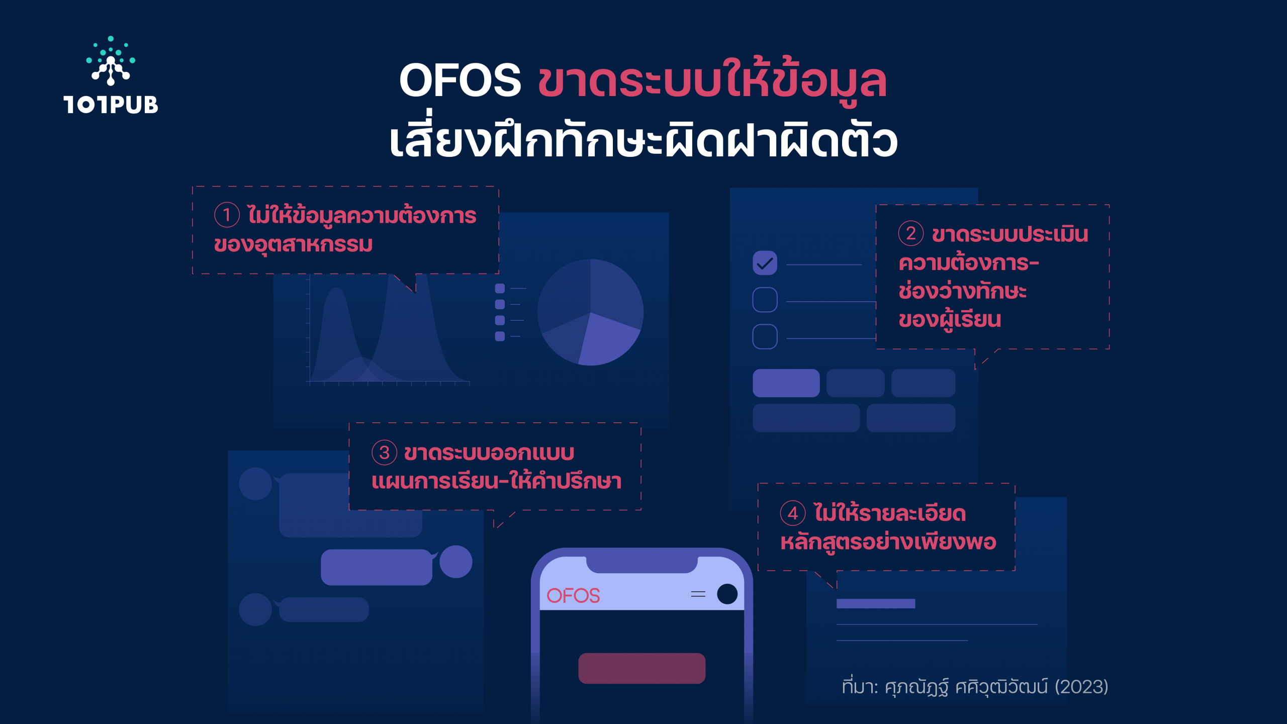 ฉัตร คำแสง ผู้อำนวยการ 101 PUB ชวนทำความรู้จักและสำรวจปัญหาของแพลตฟอร์ม OFOS ไล่ตั้งแต่ก่อนตัดสินใจเรียน ไปจนถึงเรียนจบ พร้อมเสนอข้อเสนอแนะเพื่อปรับปรุงแพลตฟอร์มฝึกทักษะประชาชนในอนาคต