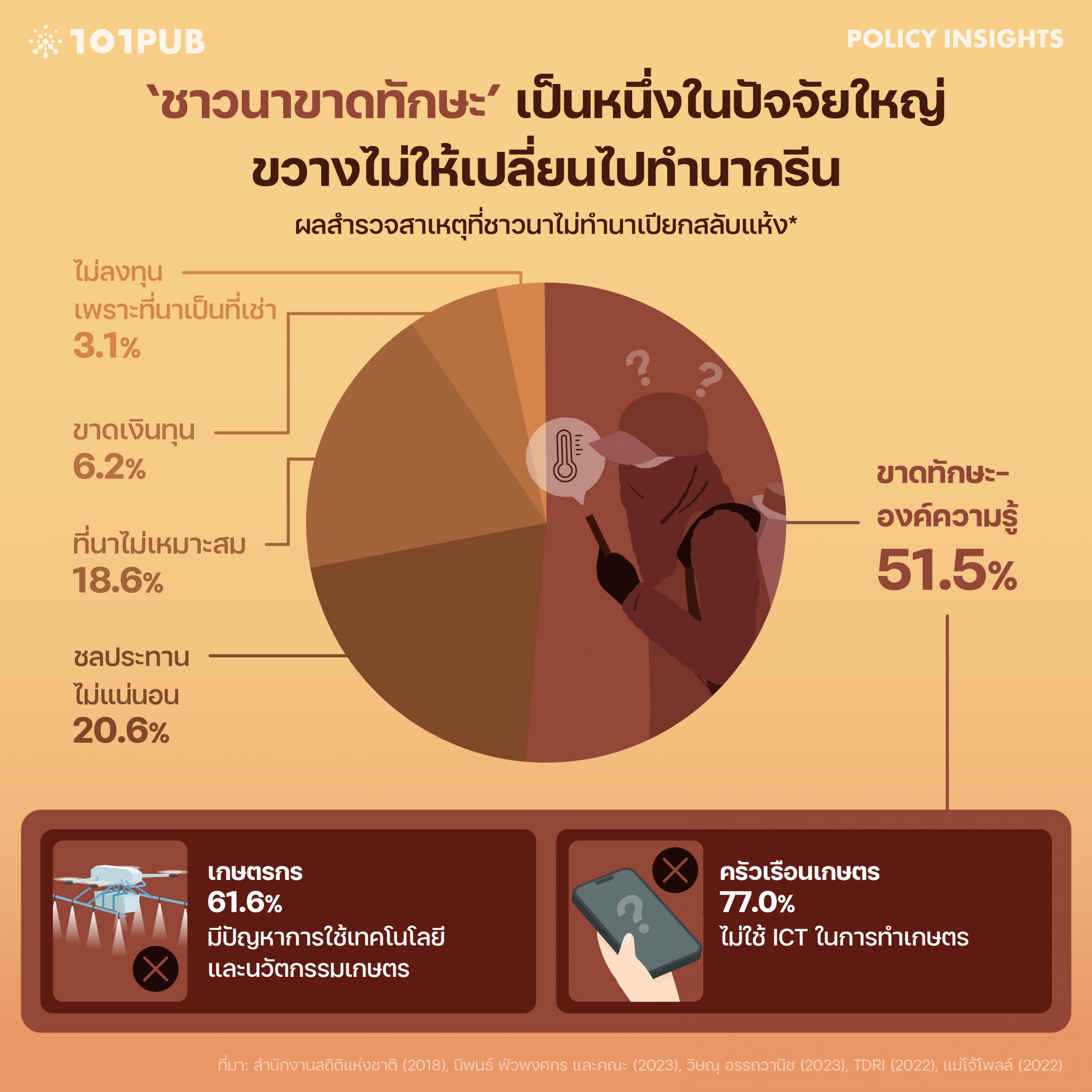 | ↑26 | กองสถิติเศรษฐกิจ, “ครัวเรือนเกษตรกับการใช้เทคโนโลยีสารสนเทศและการสื่อสารเพื่อการเกษตรในรอบปีที่ผ่านมา (พ.ค. 60 – เม.ย. 61),” สำนักงานสถิติแห่งชาติ, 2018, https://www.nso.go.th/nsoweb/storage/survey_detail/2023/20230430170907_84859.pdf (เข้าถึงเมื่อ 24 ธันวาคม 2025). |